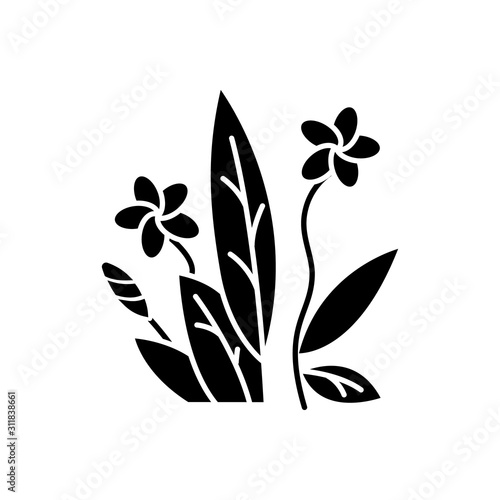 Plumeria Glyph Icon Exotic Region Flowers Flora Of Indonesian Forests Small Tropical Plants Blossom Of Frangipani With Leaves Silhouette Symbol Negative Space Vector Isolated Illustration Stock Vector Adobe Stock